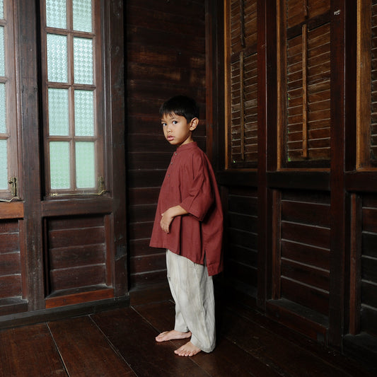 Adiratna Boxy Boy Set in Dusty Red