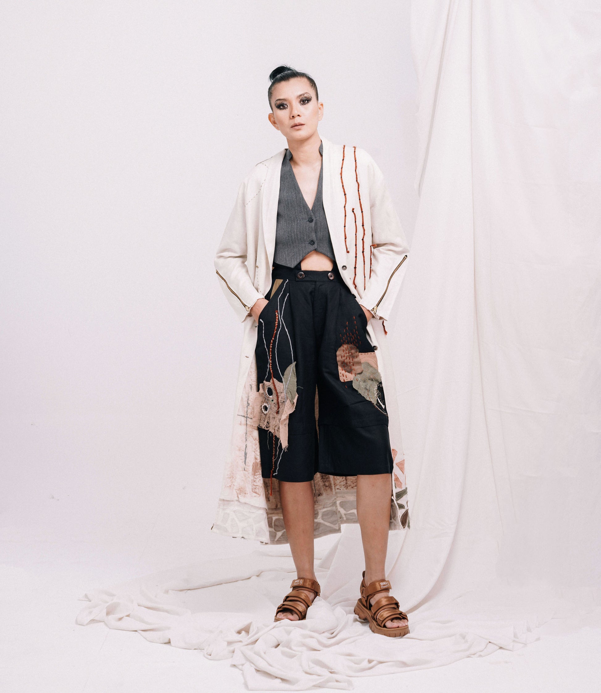 - Centre front zipper opening.