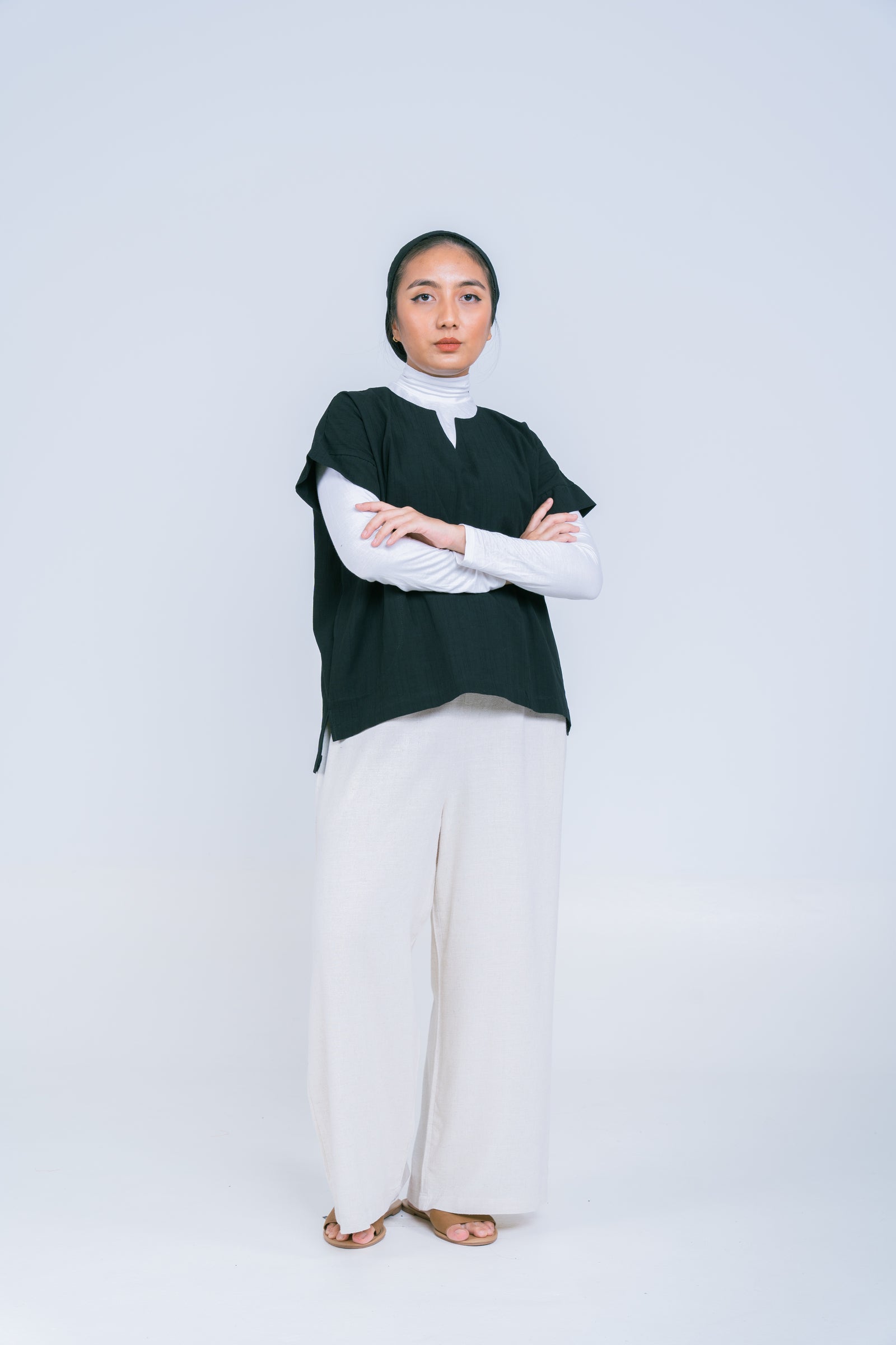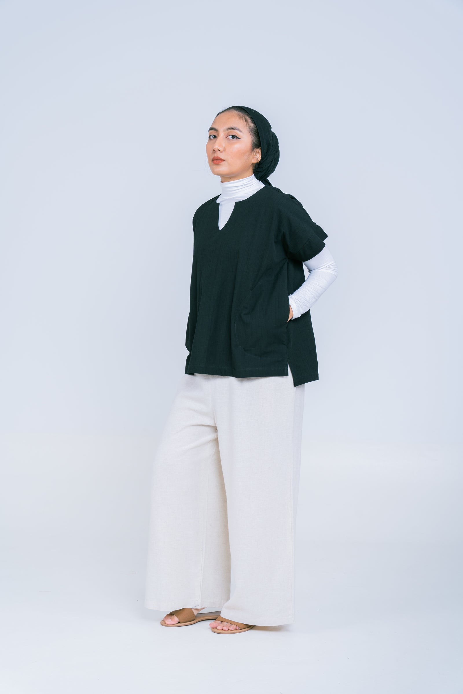 Introducing our Basics Oversize Top, a versatile and comfortable piece that belongs in every wardrobe. Crafted from textured cotton, this top offers a unique and visually appealing texture. This top is a versatile and essential addition to your wardrobe, offering comfort, style, and practicality. Its oversize fit, round neck with a V-slit opening, side pockets, and hi-lo length short sleeves make it a go-to option for everyday wear and beyond.
