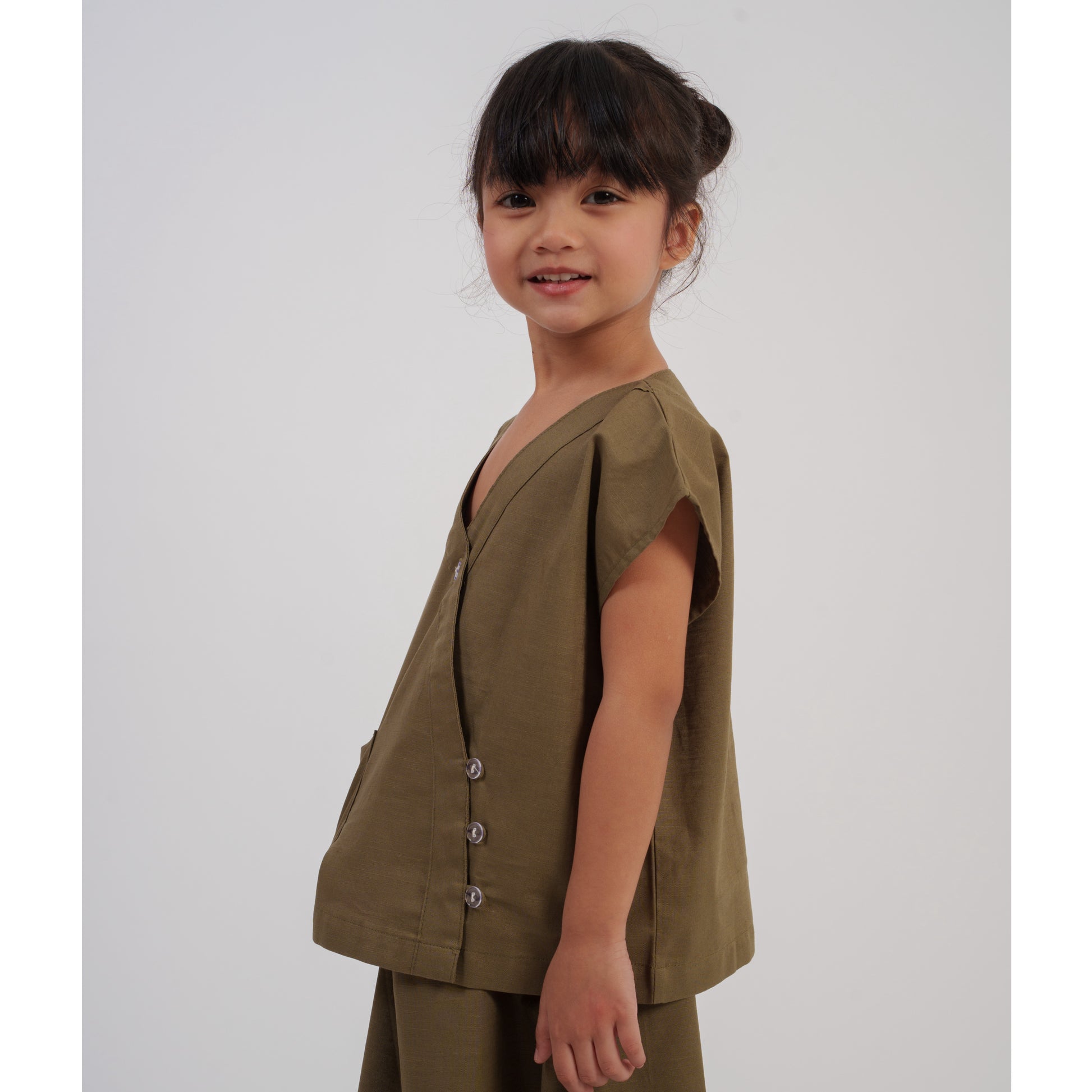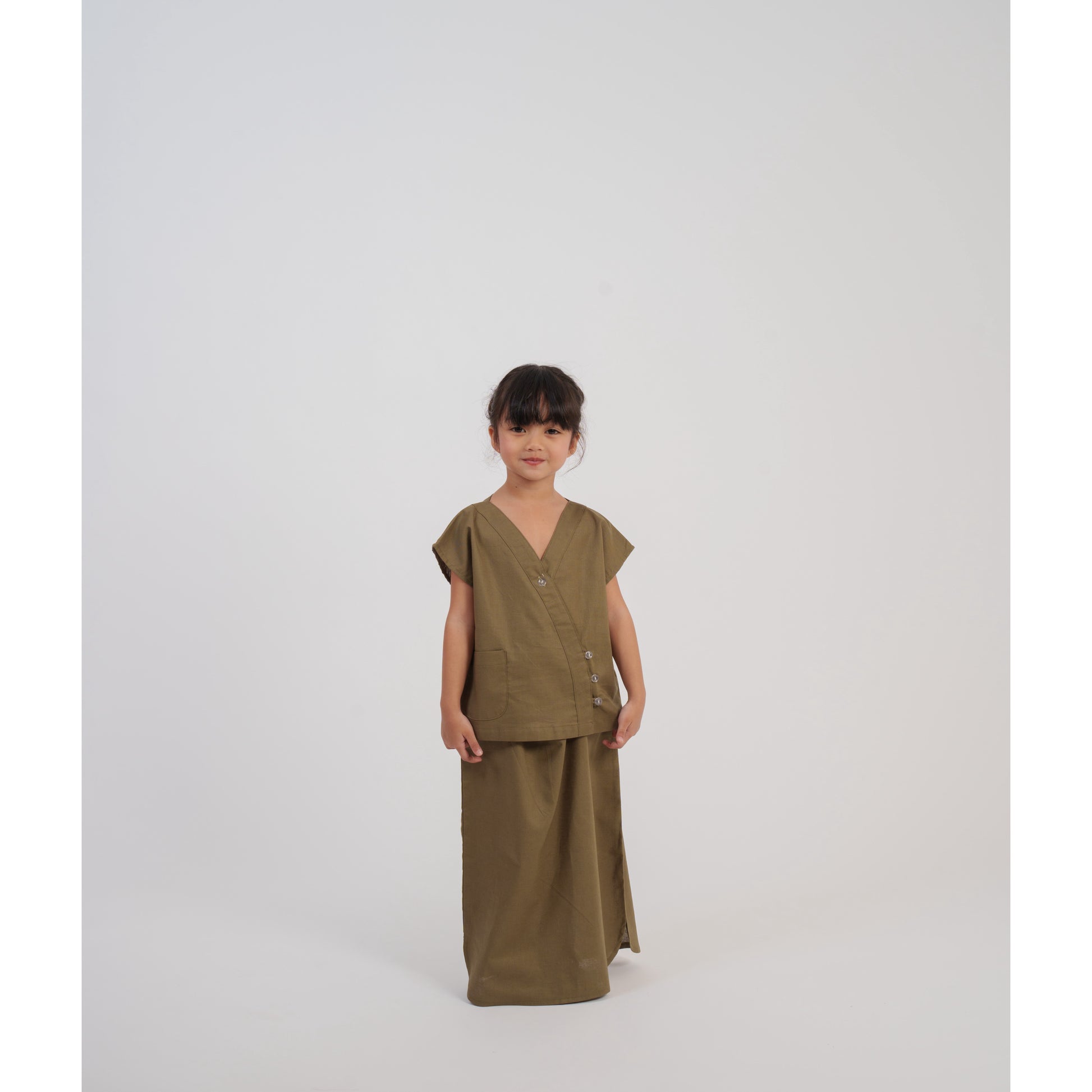 Hanami is a charming top and bottom set designed for girls, combining comfort with gentle detailing. The top features one front pocket and a buttoned front, adding a practical yet playful touch.