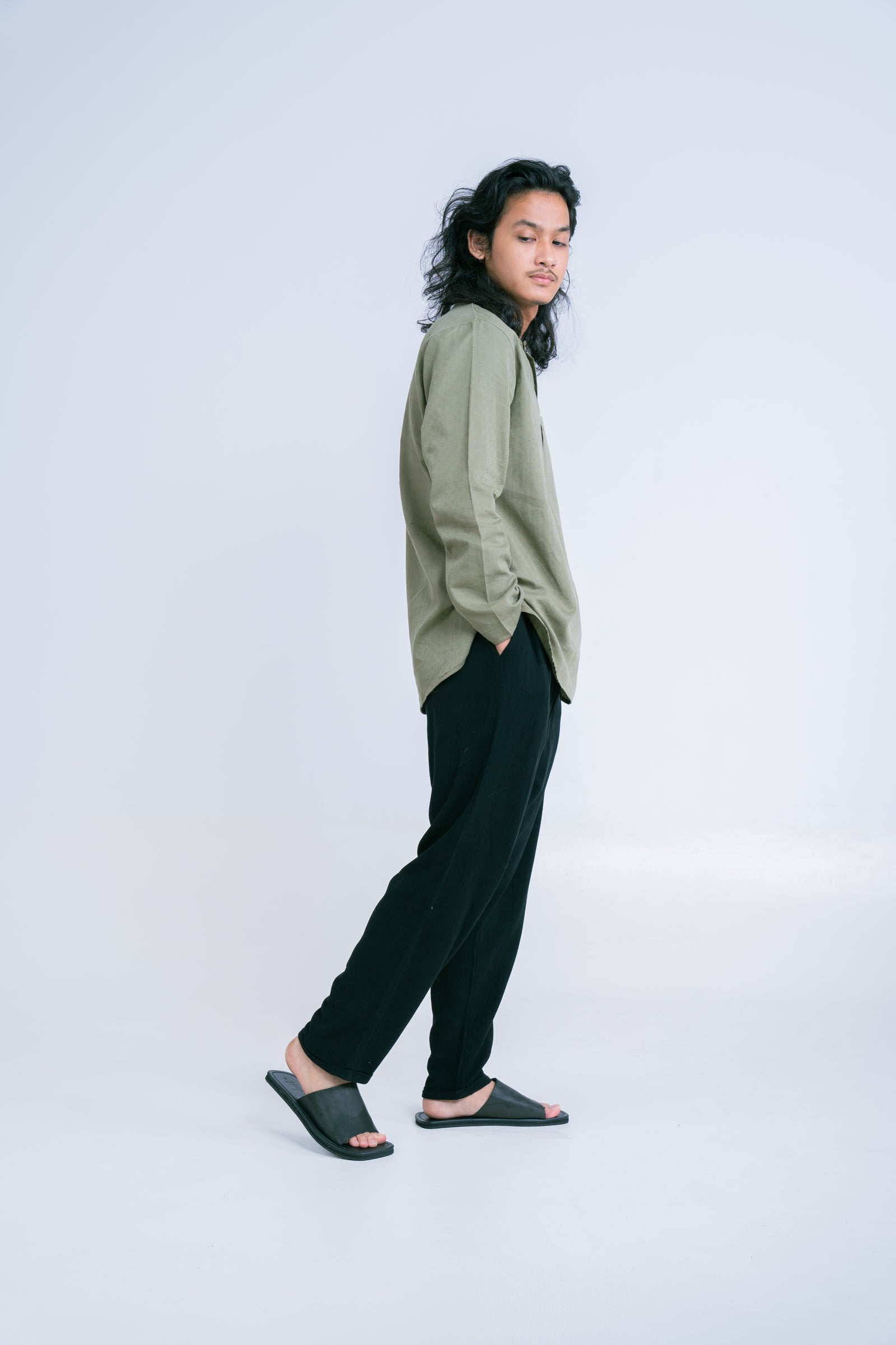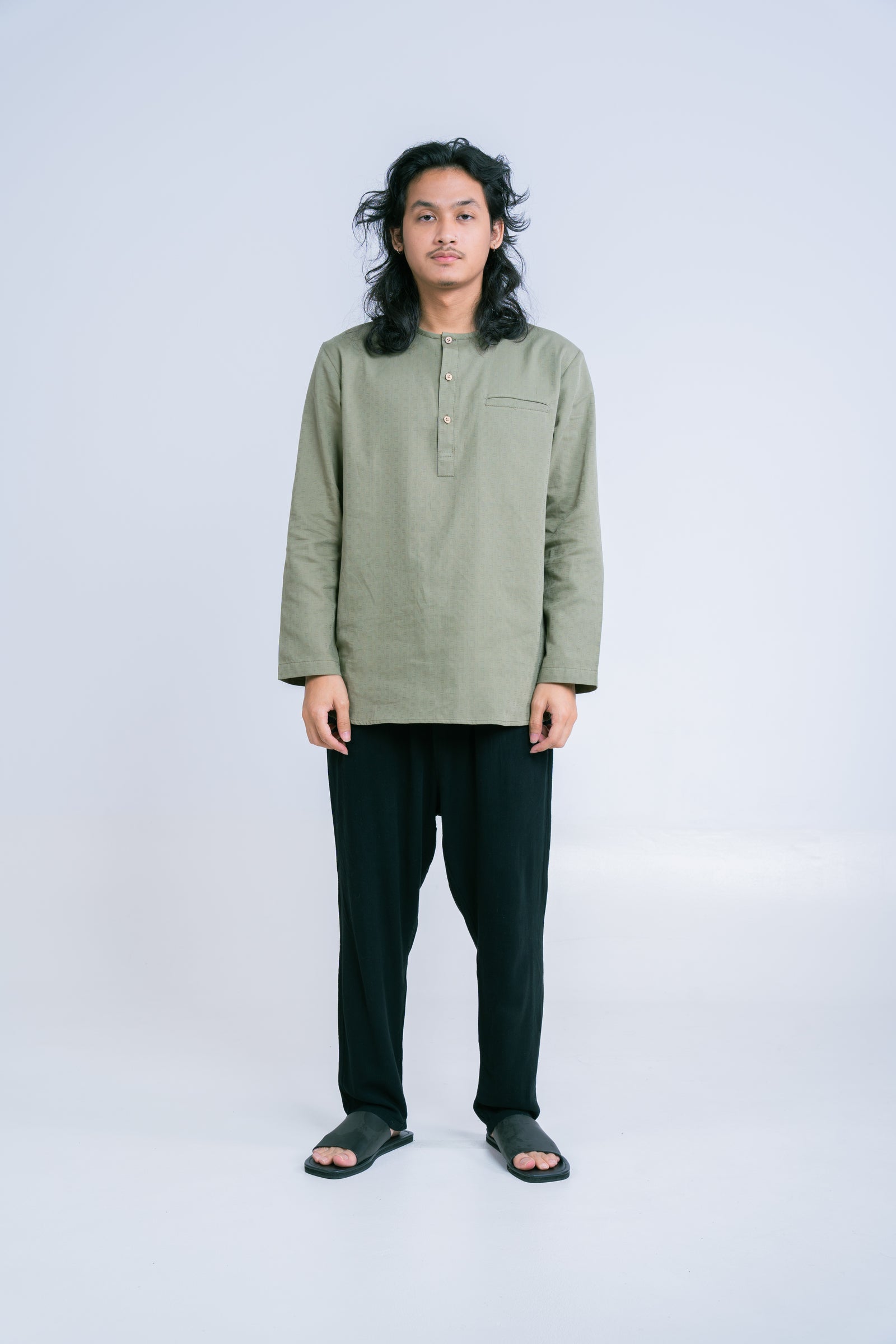 This top is made from textured cotton, which adds a unique and tactile element to the fabric. It provides a comfortable and breathable feel, making it suitable for various weather conditions. Featuring a round neckline, which is a circular neckline without a collar. This type of neckline offers a relaxed and casual look. It has a front button opening, allowing for easy wearing and removal of the shirt. This pocket located on the chest area of the shirt and provides a minimalistic and sleek design detail. The top has an oversized fit, which means it is intentionally designed to have a looser and more relaxed silhouette. The oversized fit offers a comfortable and laid-back style, making it suitable for casual and informal occasions.