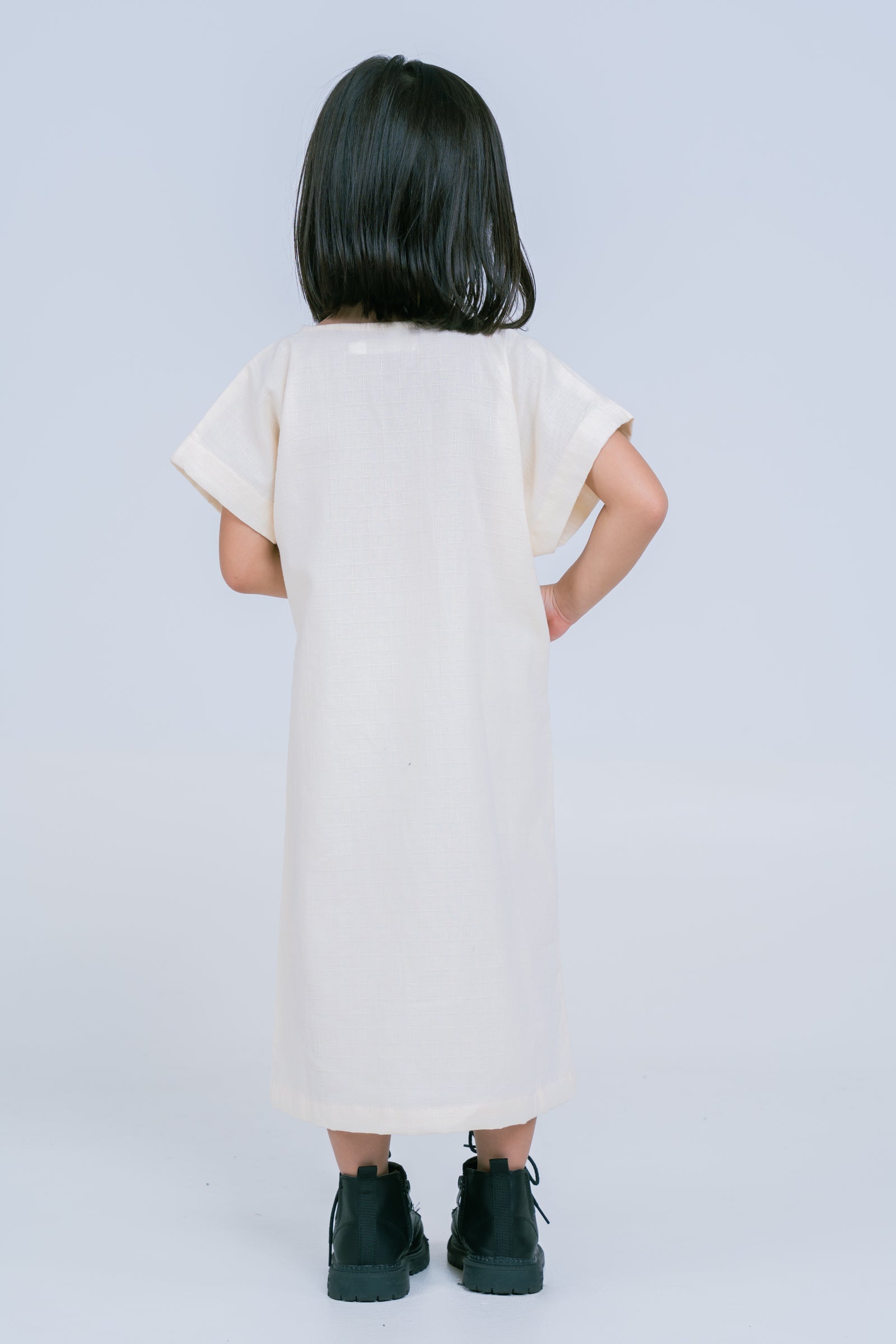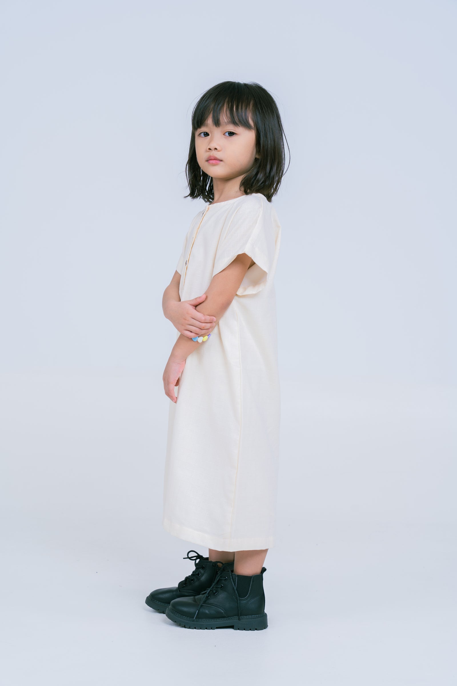 The dress also boasts a front opening button design, adding a touch of style and functionality. The buttons not only provide easy closure but also enhance the overall look of the dress, giving it a fashionable and trendy appeal. With a below knee length, this dress offers a versatile and age-appropriate option for your little one. It provides coverage while still allowing for ease of movement and playfulness. This dress can be dressed up or down for various occasions. Pair it with cute sandals and accessories for a more formal event, or dress it down with sneakers for a casual and comfortable everyday look. With a front opening button, and below knee length is the perfect combination of comfort and style, your child will shine in this versatile and adorable dress, providing them with both comfort and confidence throughout their day.