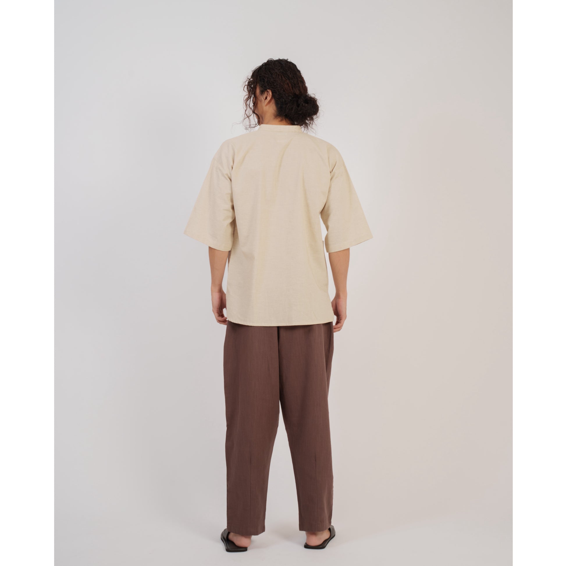 occasions. The sleeves and mandarin collar offer a modern aesthetic, while the front pockets provide utility and extra flair. This shirt balances comfort, style, and practicality for the modern man.