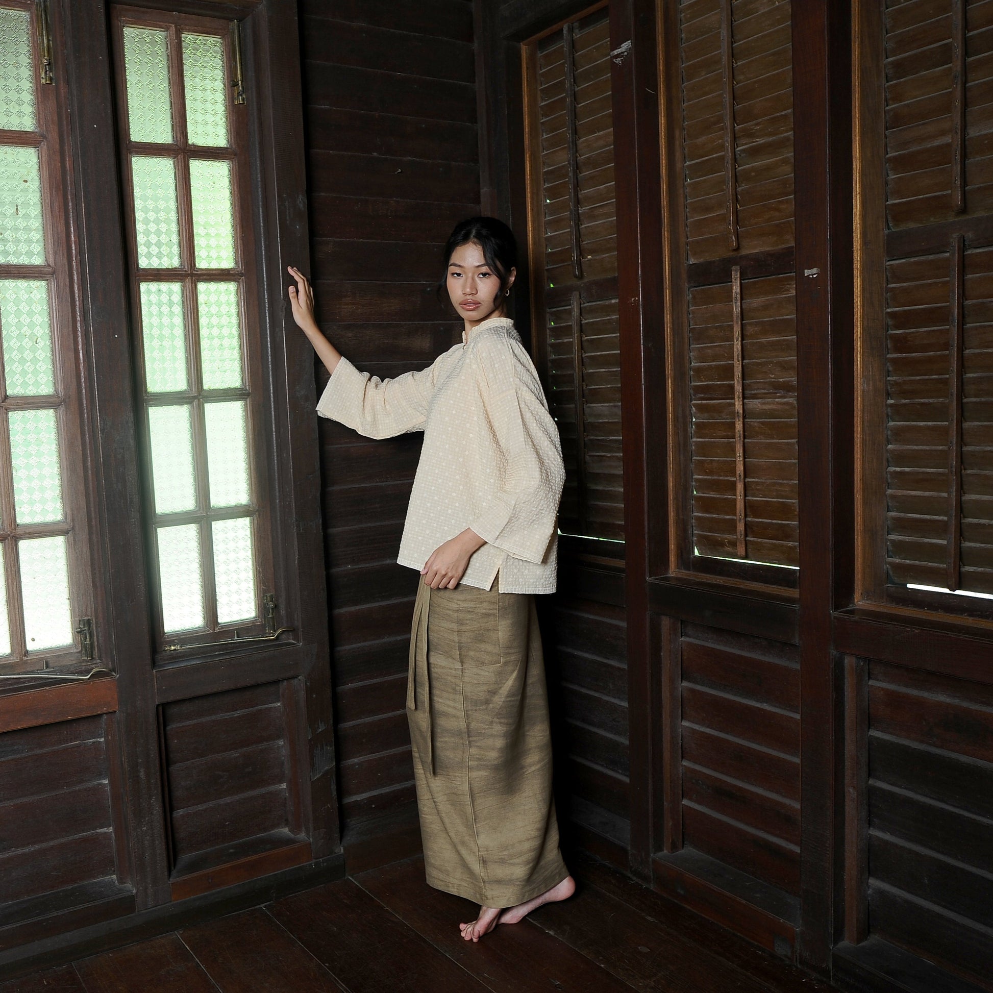 Puspita Kurung Kedah Set in Cream